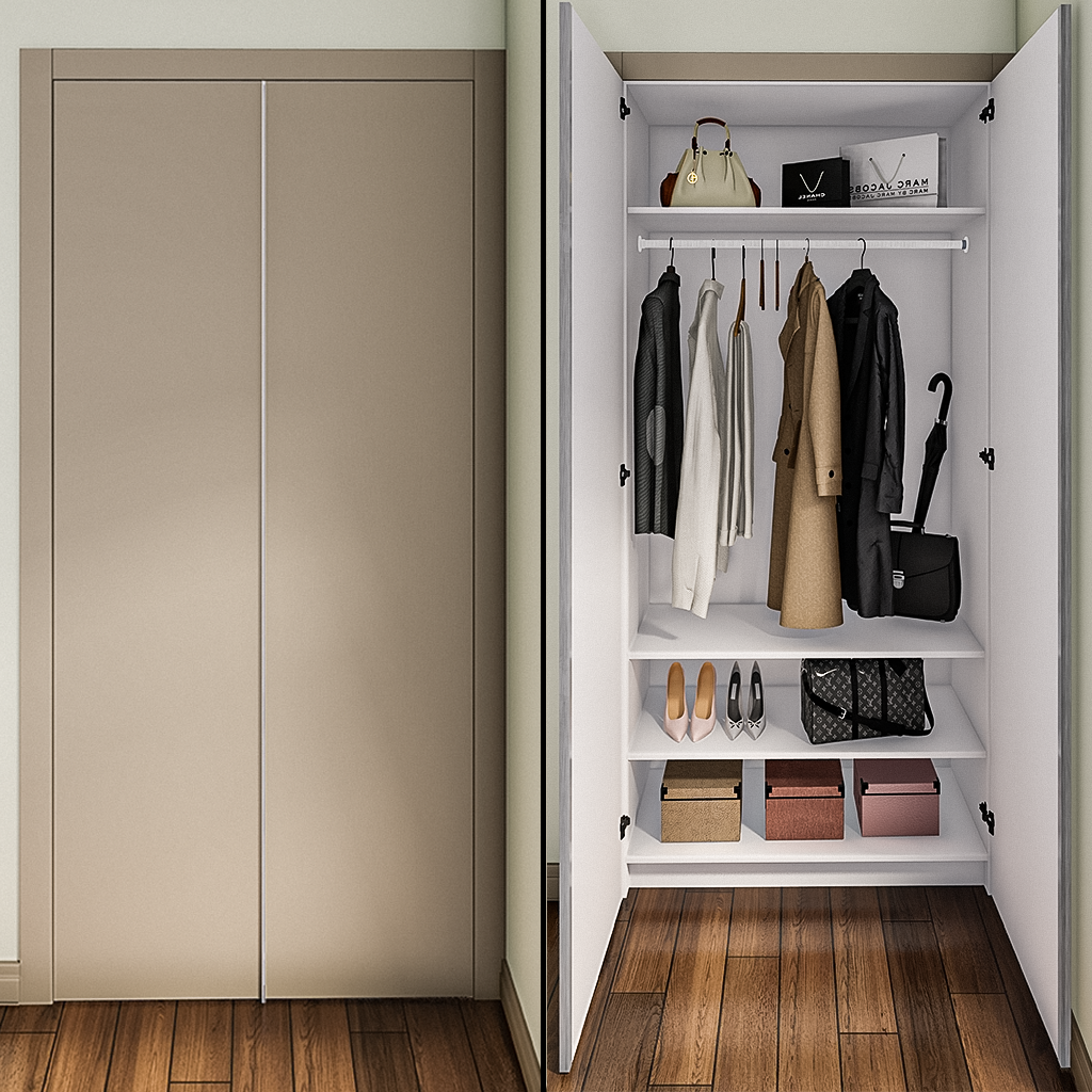 Beyaz suntalam gövde içerisinde üç adet raf ve bir adet askı borusu bulunacaktır.