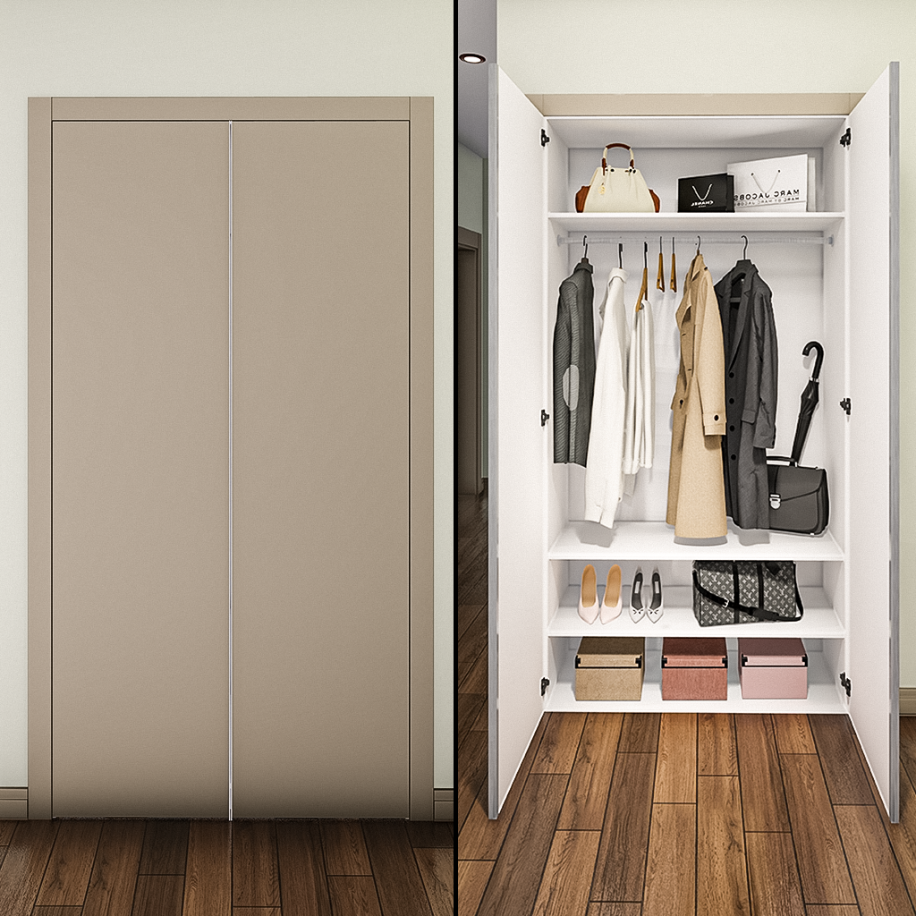 Kapakların iç yüzleri beyaz mdflam, dış yüzleri ise kapı ve süpürgelikleriniz ile aynı renkte, PVC kaplı olarak imal edilecektir.